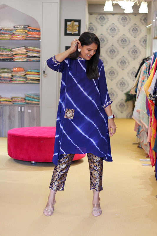 BestsellerBlue Tie Dye Top with Banarasi Pants
