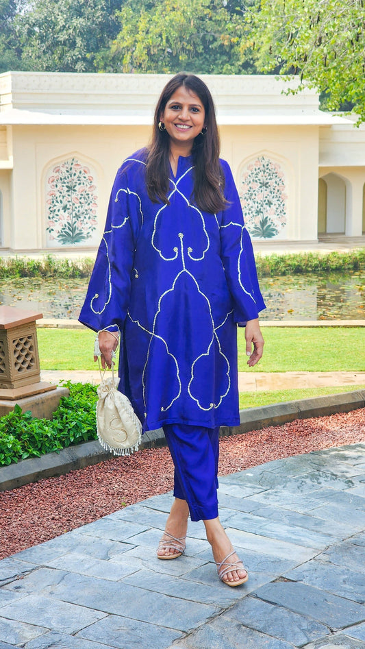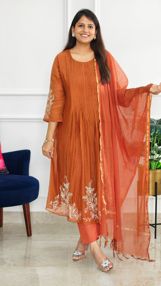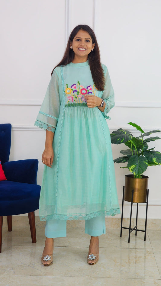 BestsellerHappy Blue Mul Chanderi Embroidered Set
