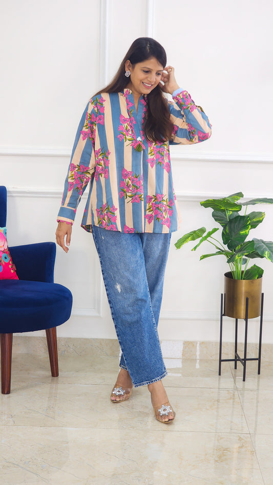 bestsellerBlue Stripe Embellished Up Down Shirt