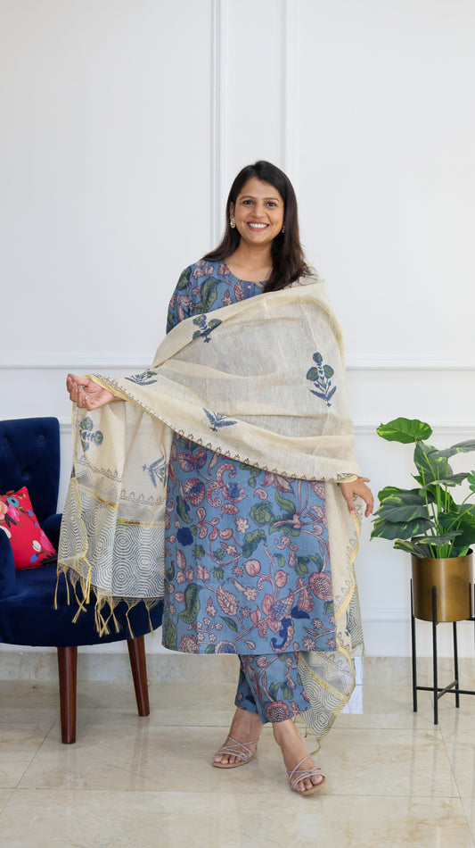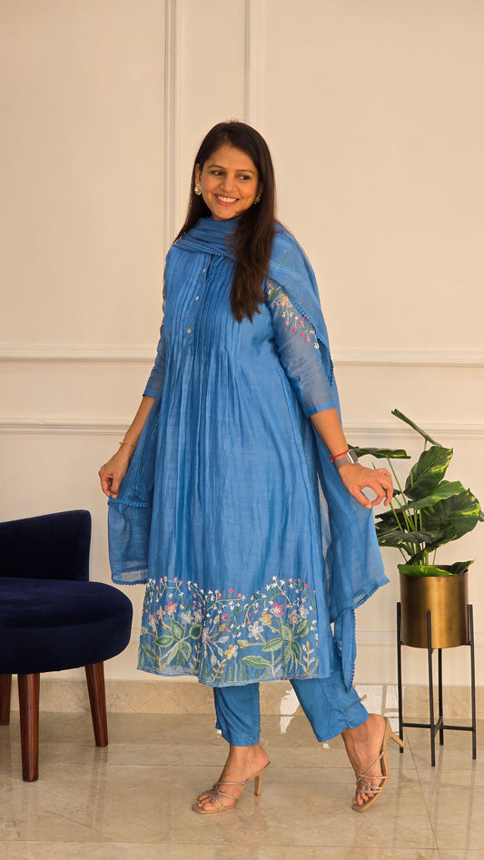 BestsellerHappy Blue Mul Chanderi Embroidered Set