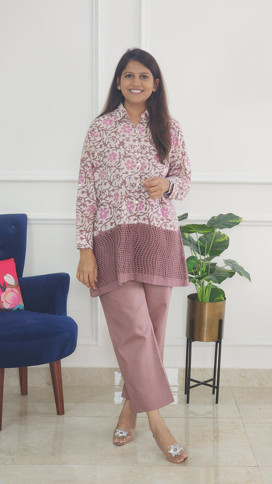 Mauve Hand Block with Schiffli Details Co Ord Set