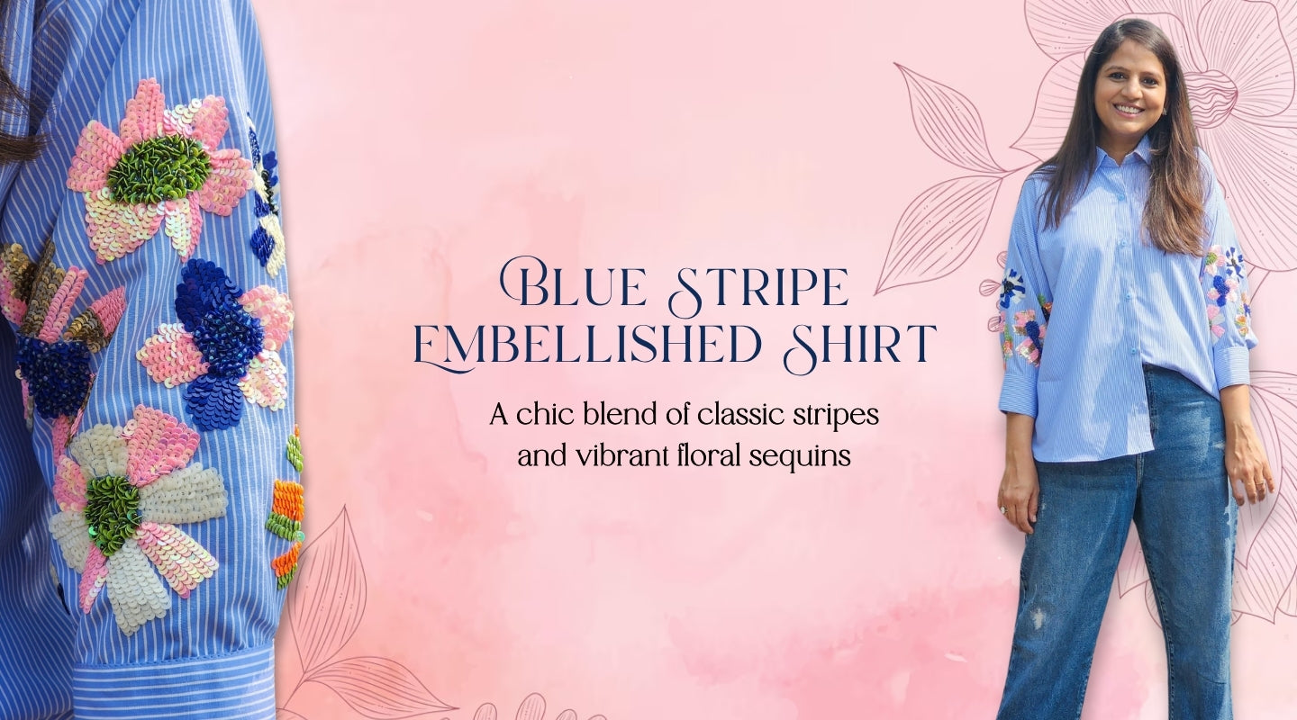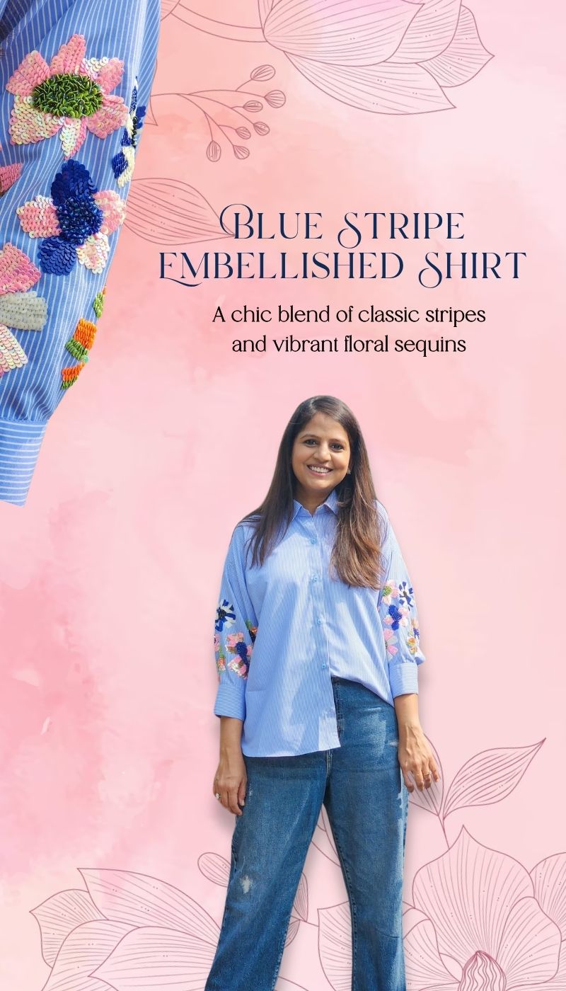 bestsellerBlue Stripe Embellished Up Down Shirt
