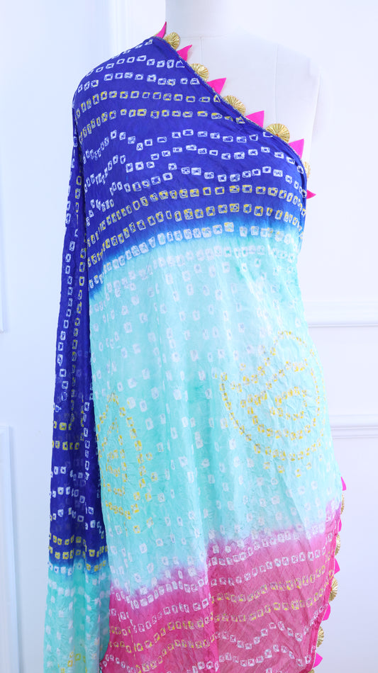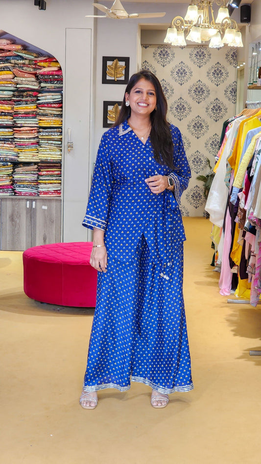 Ready To ShipBlue Bandhej Angrakha Top and Palazzo Set