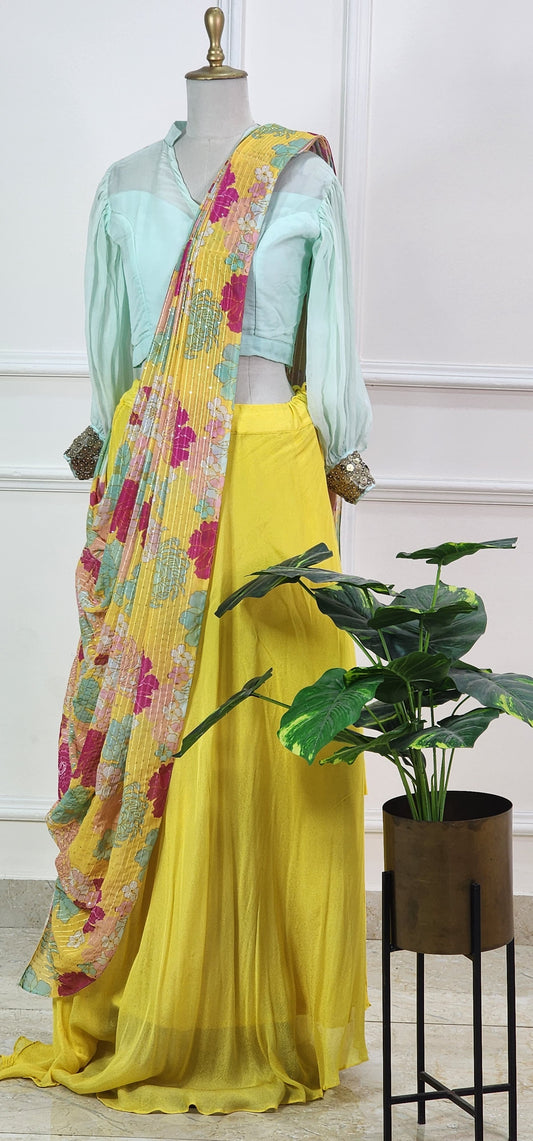 Ready To ShipBlue and Yellow Floral Lehenga Set