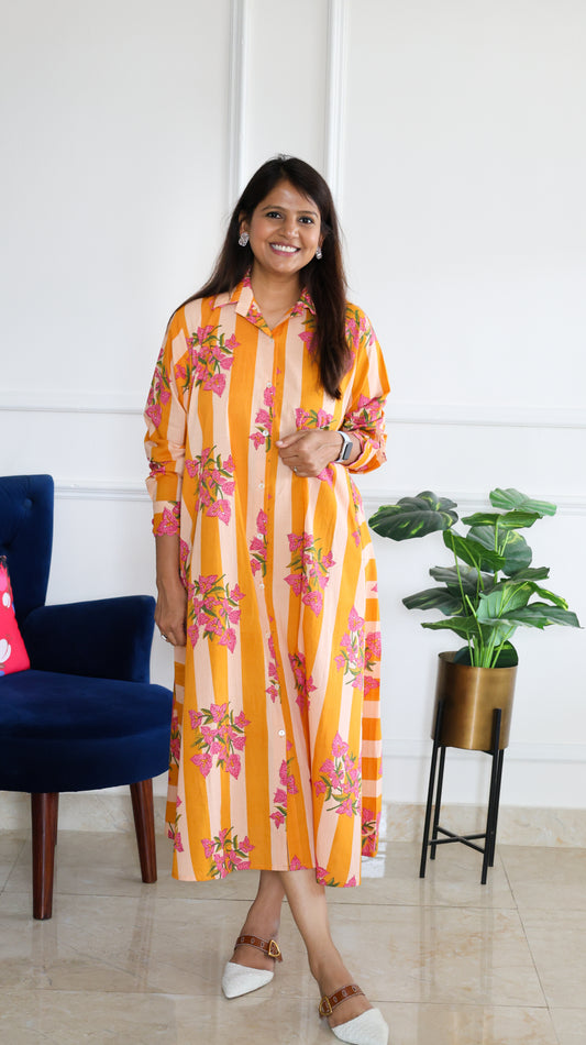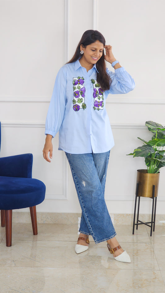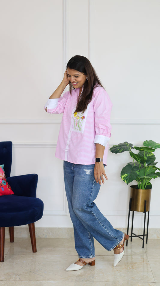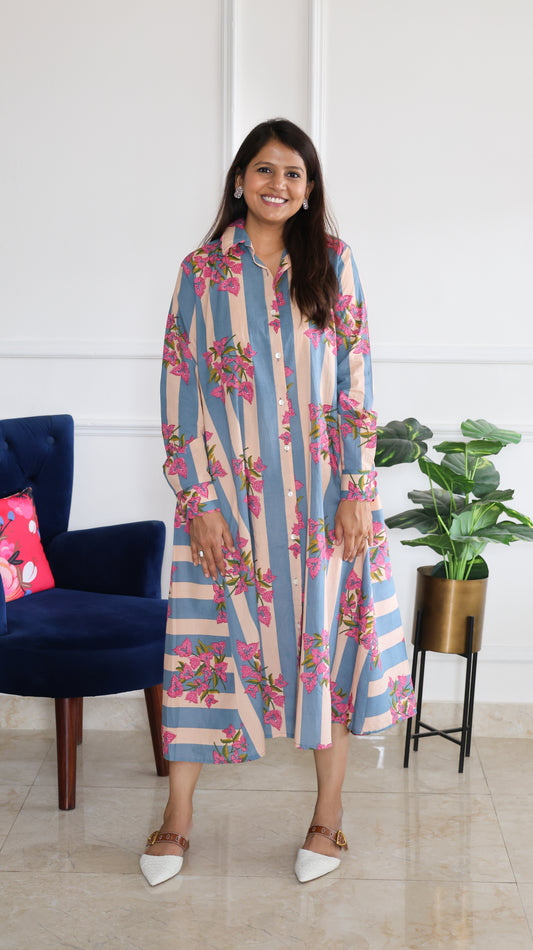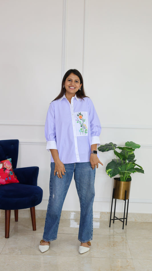 Ready To ShipLilac Blue Stripe and Bloom Shirt