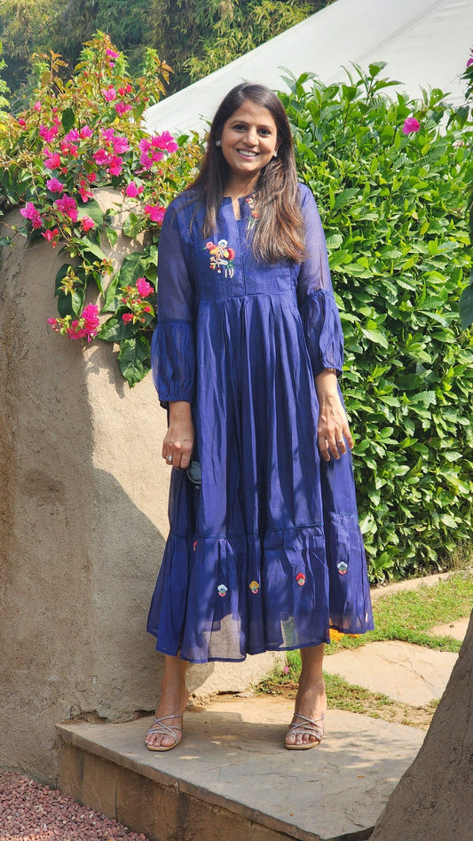 BestsellerHappy Blue Mul Chanderi Embroidered Set