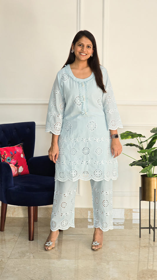 Ready To ShipSky Blue Schiffli Kurta Set
