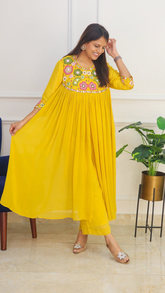 Basant ~ Yellow Multi Gota Patti Anarkali Suit