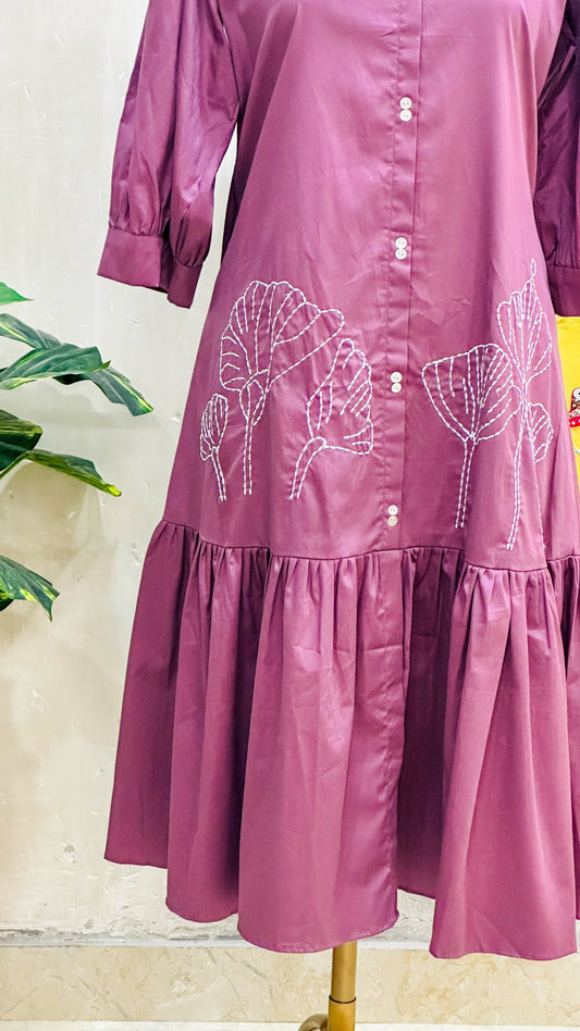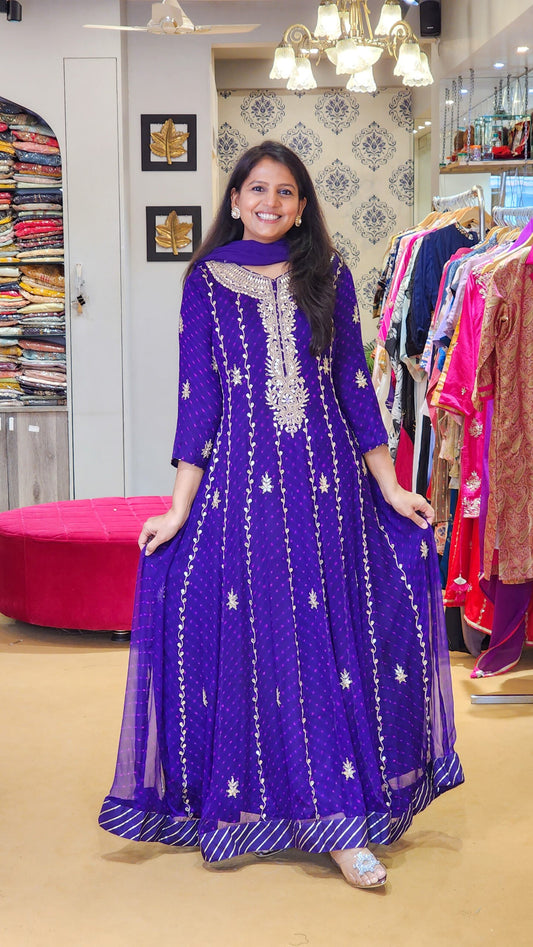 Ready To ShipPurple Hand Mothra Anarkali Dress on Pure Georgette