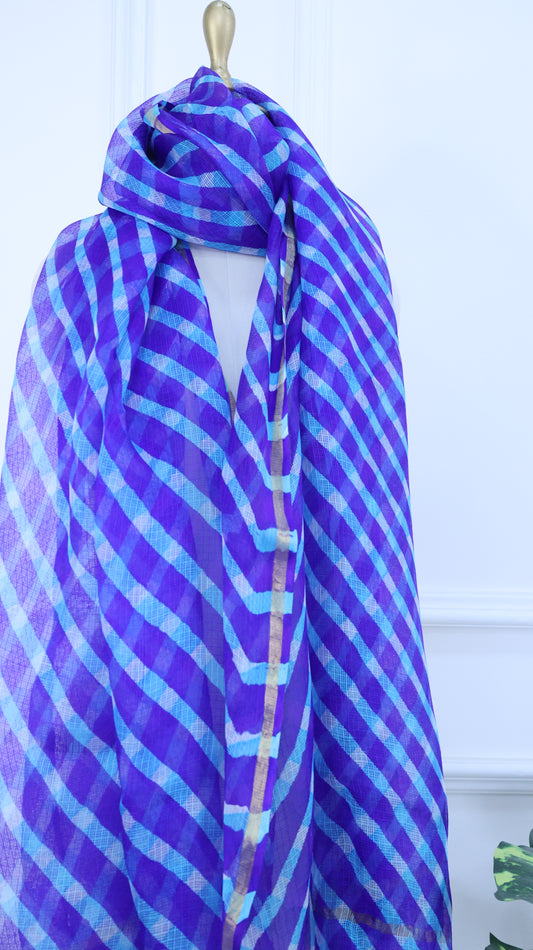 Blue Pure Doriya Silk Leheriya Dupatta