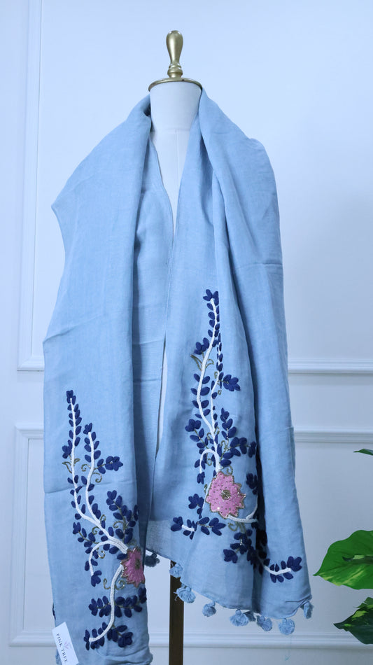 Blue Linen Stole with Embroidery