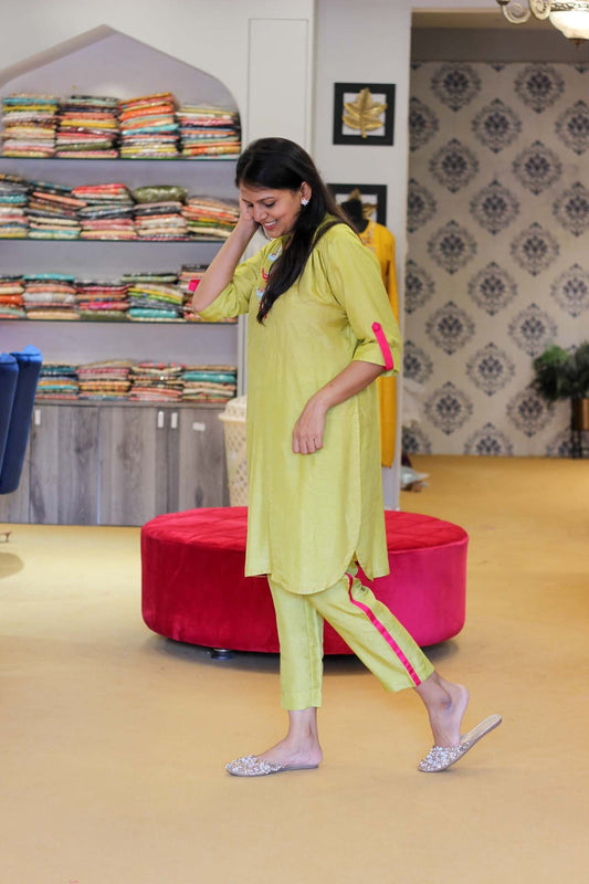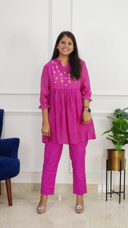 New ArrivalMagenta Mul Chanderi Embroidered Co Ord Set