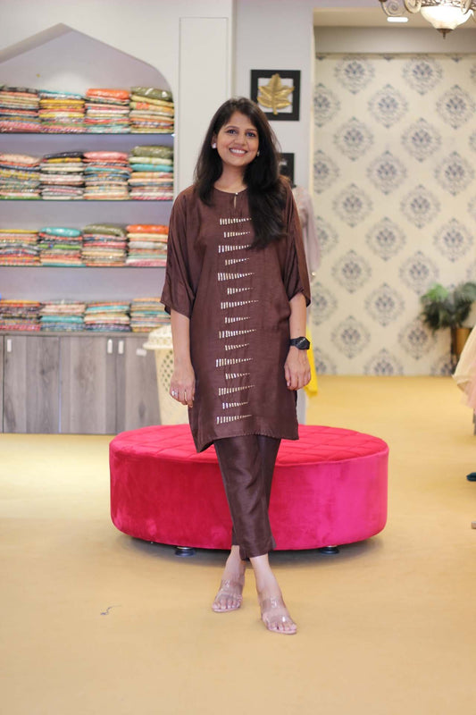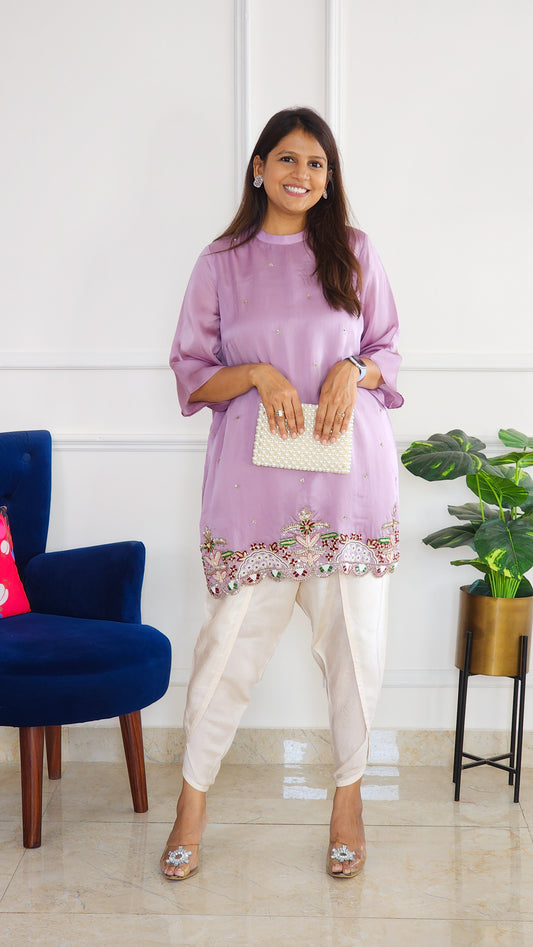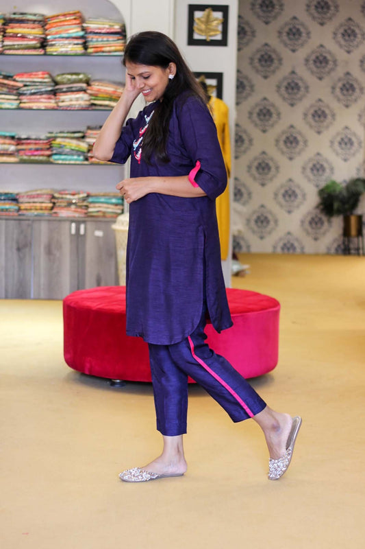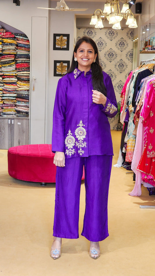 Purple Zardosi Hand Work Detailed Silk Co ord Set