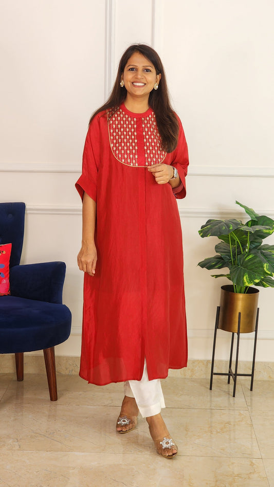 Rangrezi Laal Jaal Pants With Off White Kaftan