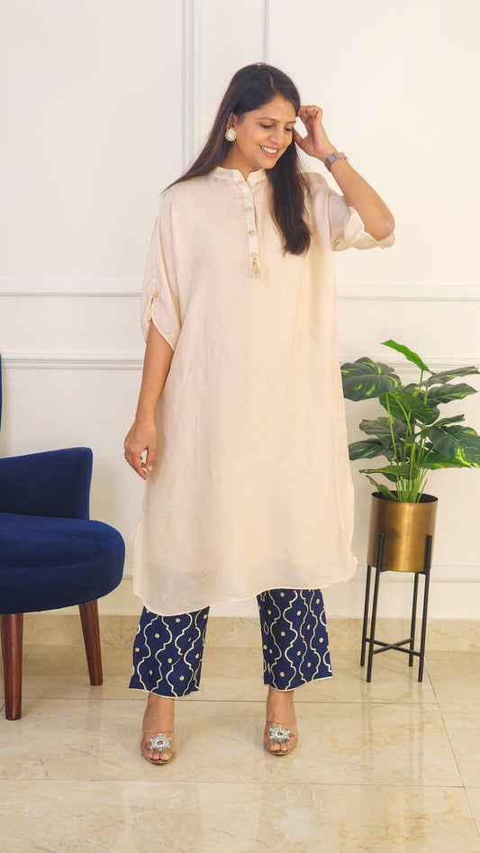 Mor Pankhi Jaal Pants With Off White Kaftan