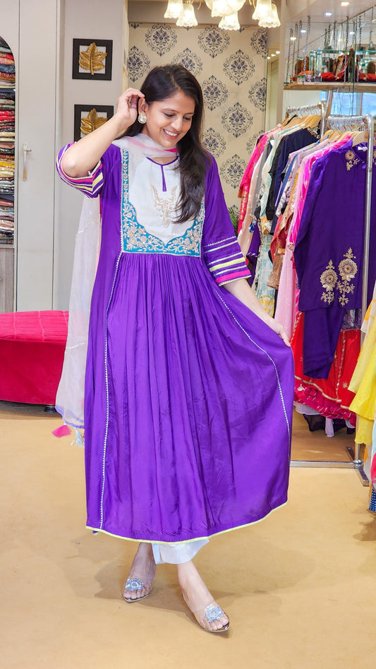 Jhilmil Purple Zardosi Hand work Detailing Flare Suit Set (F)