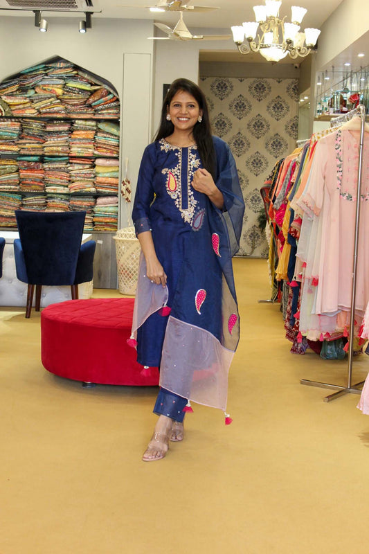 Persian Blue Zardosi Handcrafted Kurta Set.
