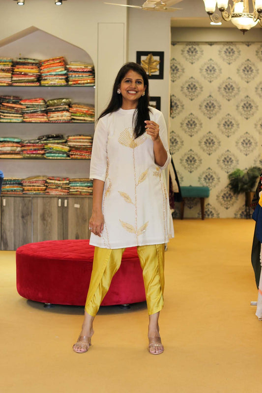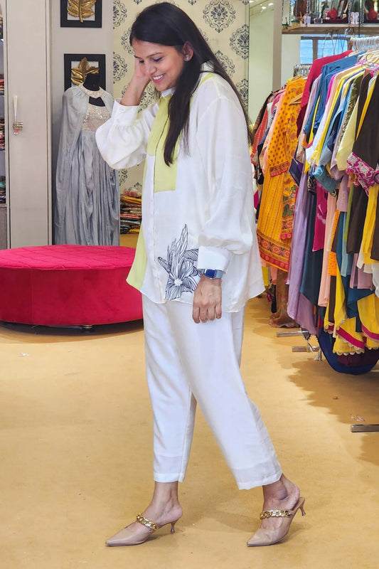 Neon Green Organza Jacket with One Shoulder Top and Pants Set