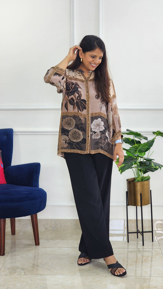 Ready To ShipBrown Crepe Floral Shirt