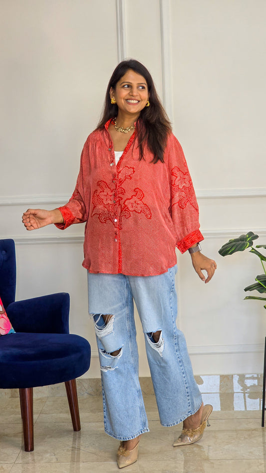 Crimson Red Bandhej Shirt