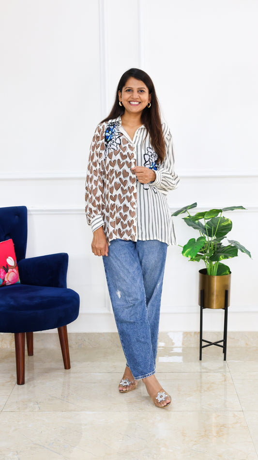 Stripe Heart Crepe Shirt