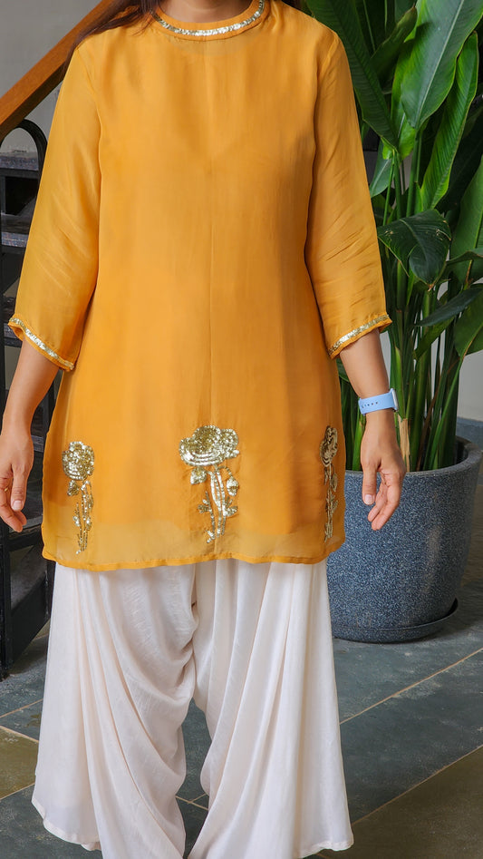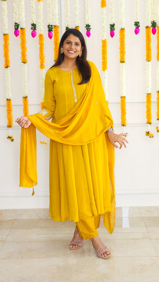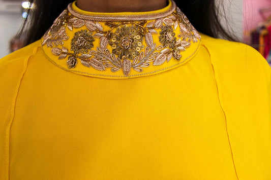 Ready To ShipYellow Leheriya Tie Dye Multi Embroidered Set