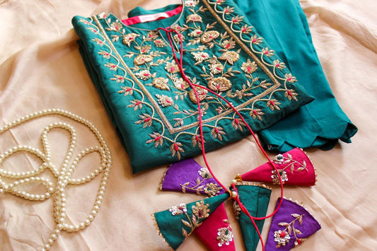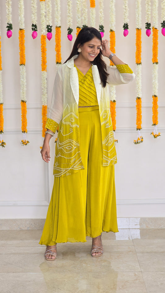 Tyohar ~ Mehendi Green Kali Top with Zardosi Work and Pallazo Set