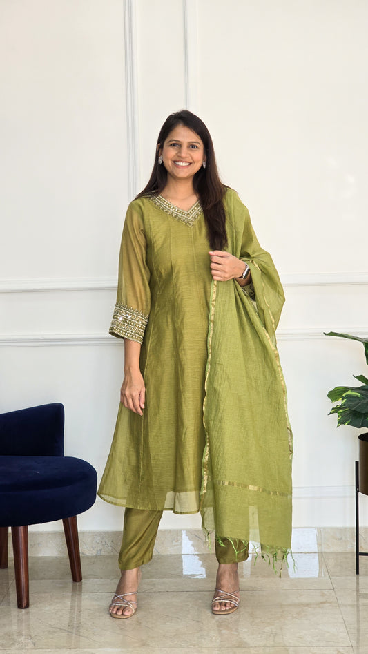 Ready to dispatchMehendi Green Gota Glam Suit Set