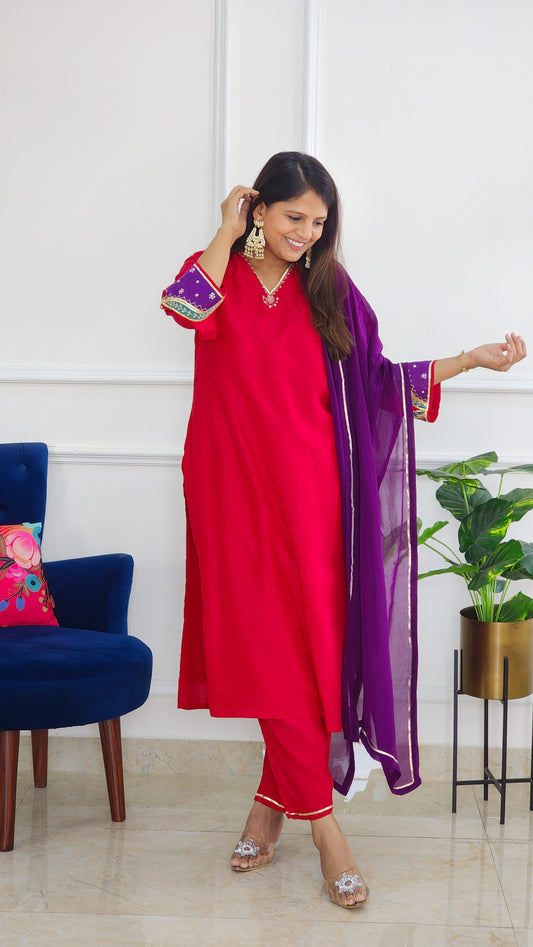 Ready To ShipRed Festive Mirror Highlight Kurta Set