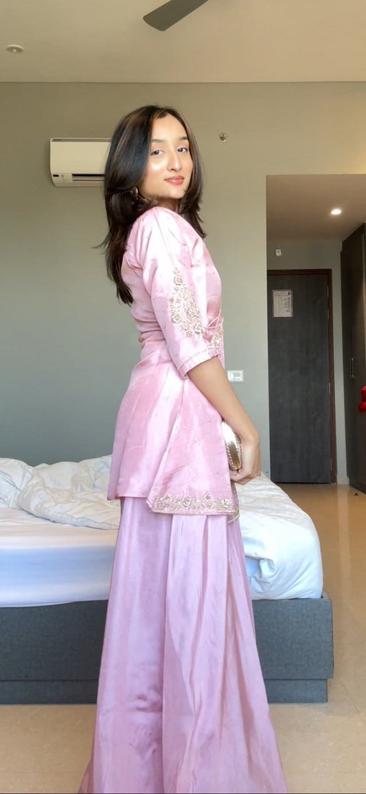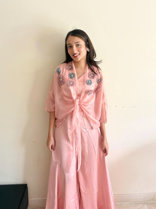 Ready To Ship New ArrivalBlush Pink 3D Flower Organza Jacket Set