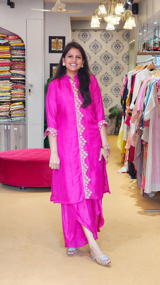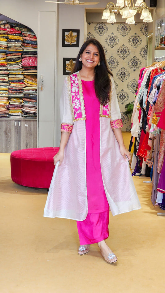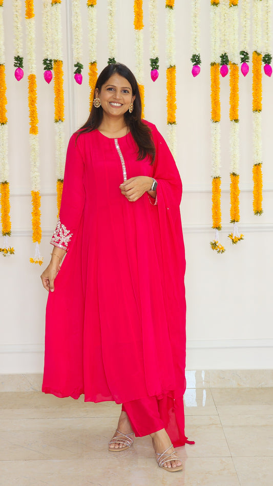 Ready To ShipRani Pink Chinnon Anarkali Set