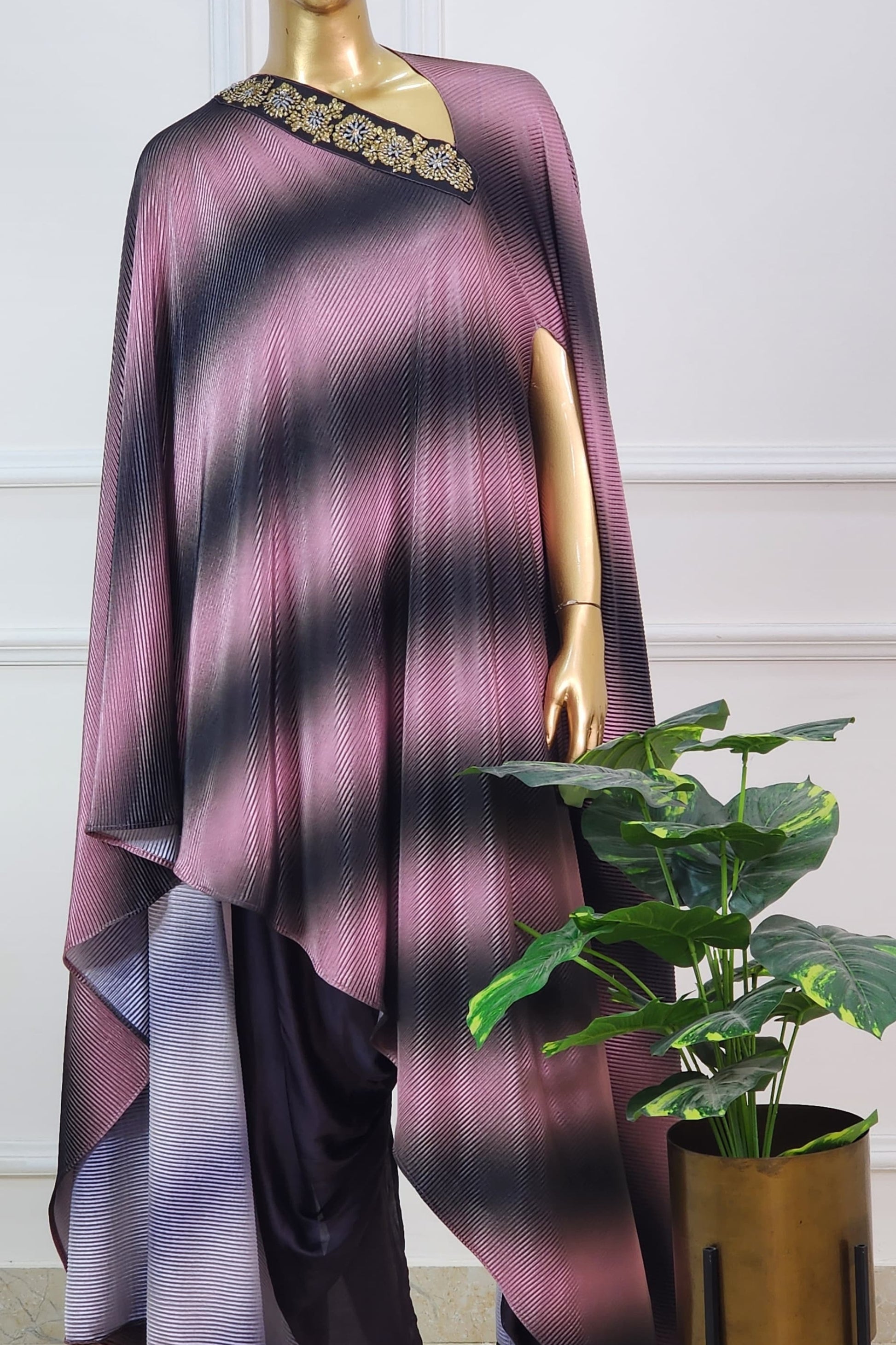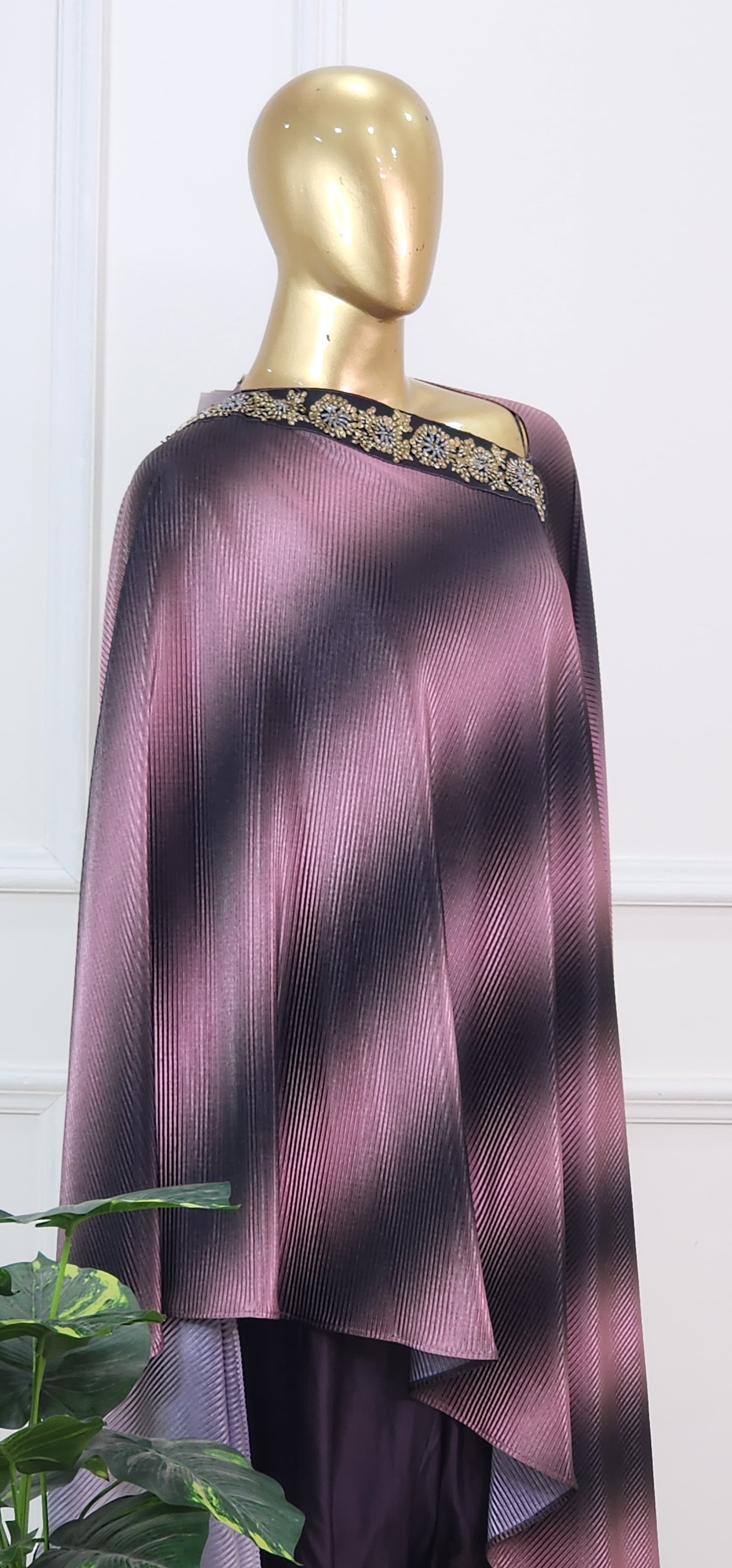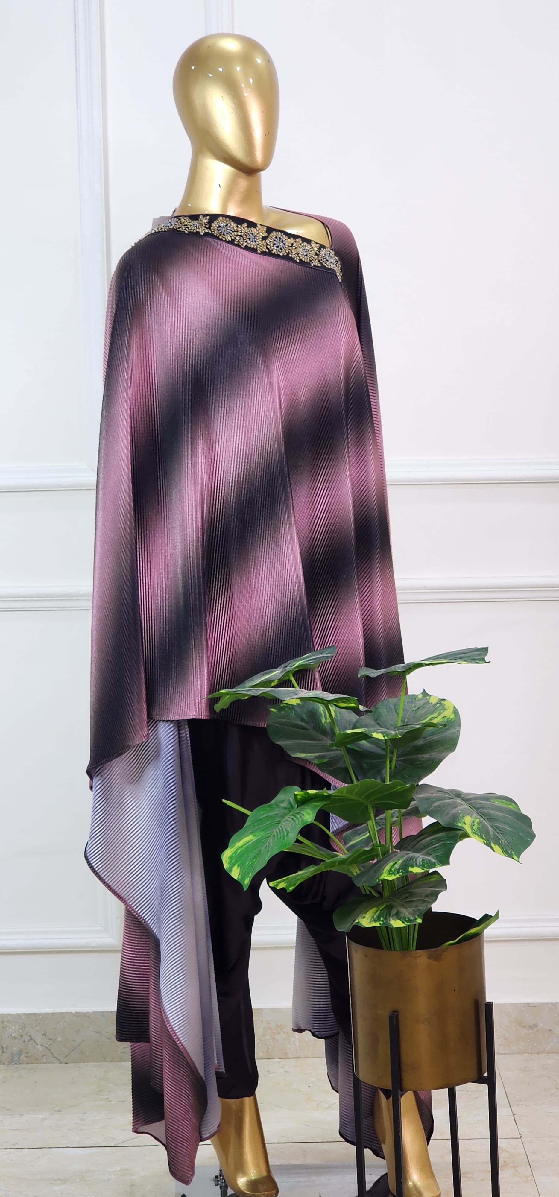 Seen here is a pleated shaded top adorned with delicate handwork, paired with stylish dhoti pants — a perfect fusion of elegance and ease