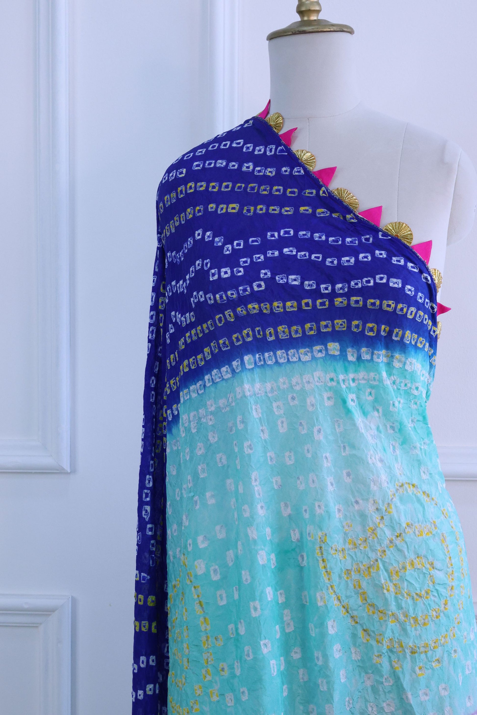 Seen here is silk pure bandhej dupatta with gota detailing on sides.