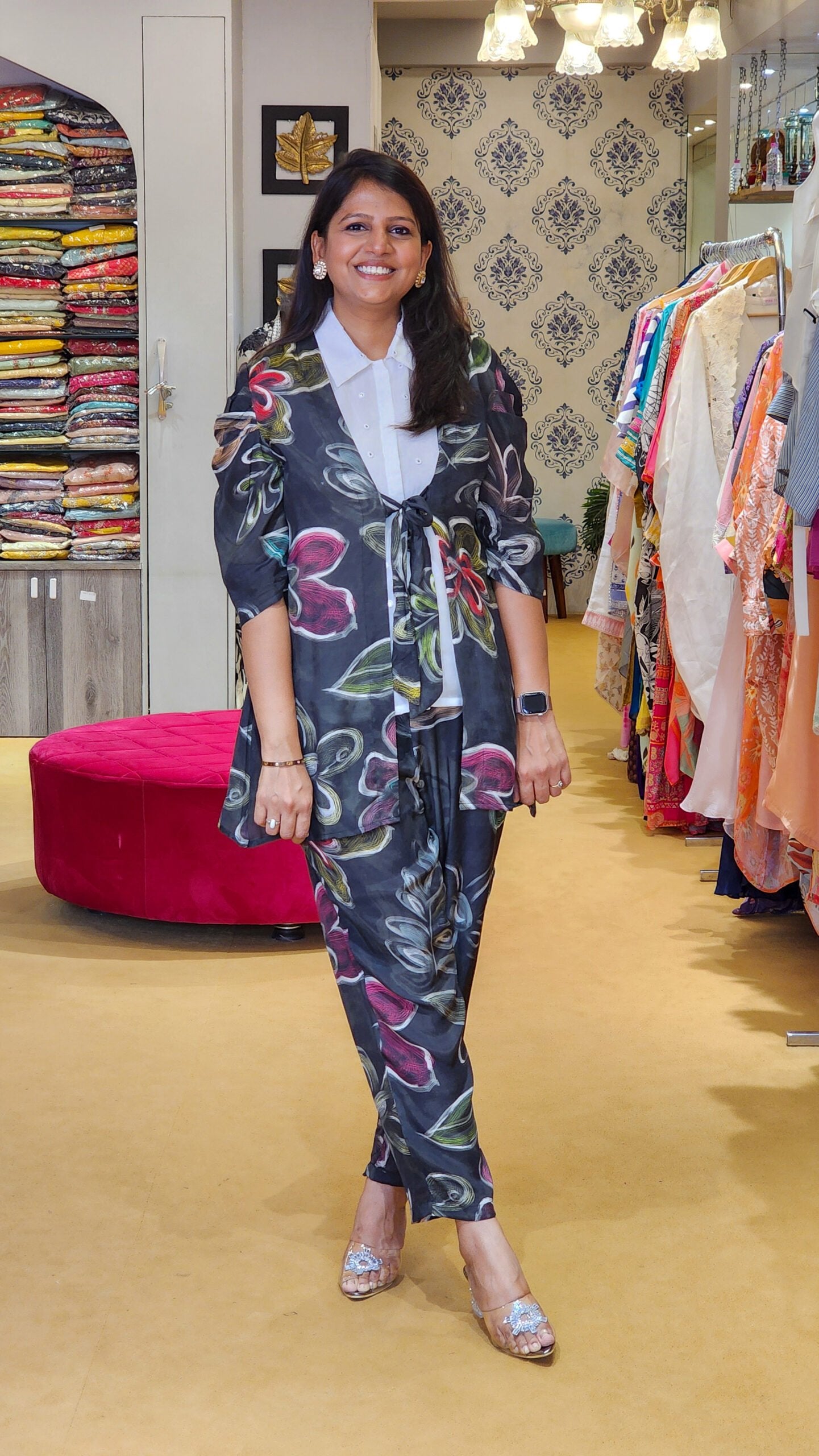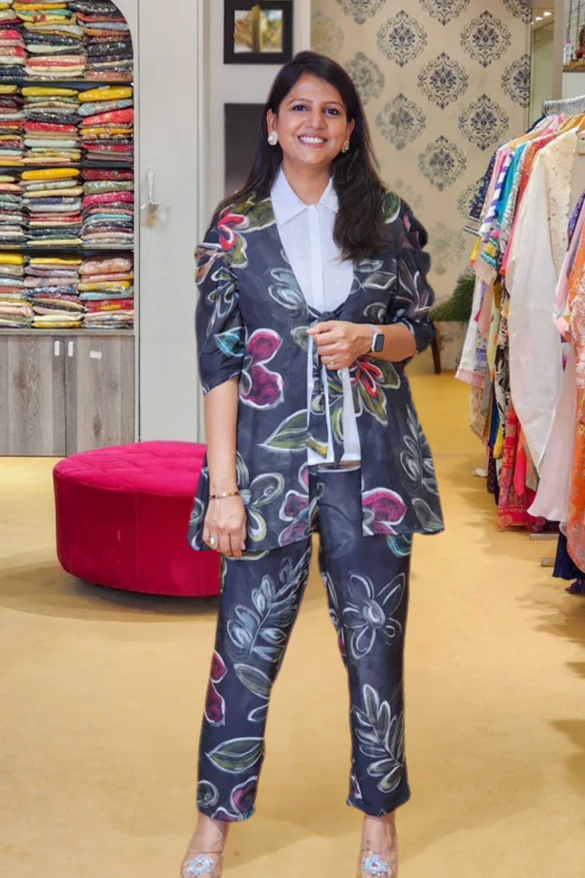 Here is on Soft Silk Co Ord Set with inner having mirror highlights all over !