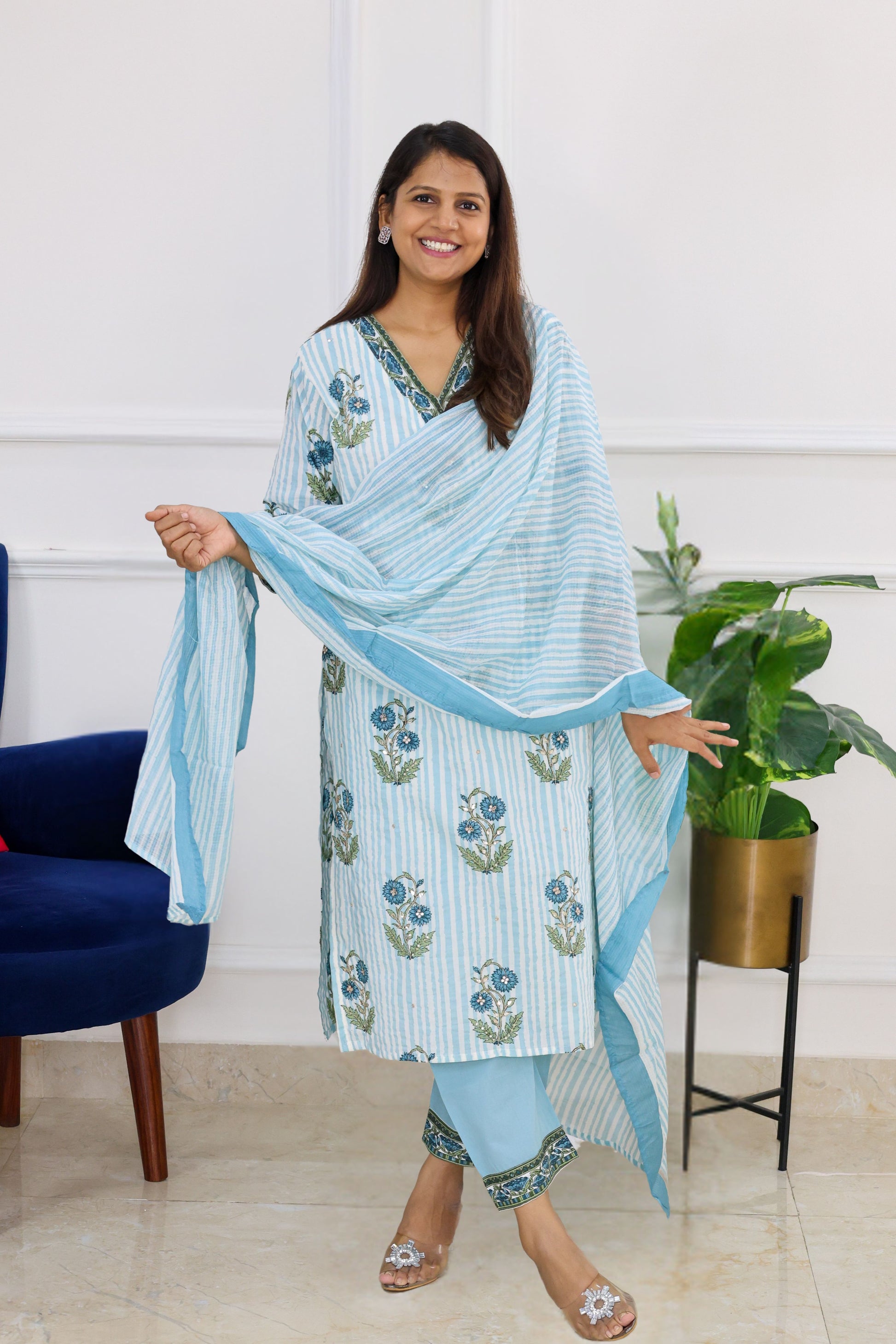 Pure cotton kurta set paired with an elegant Doriya dupatta !
