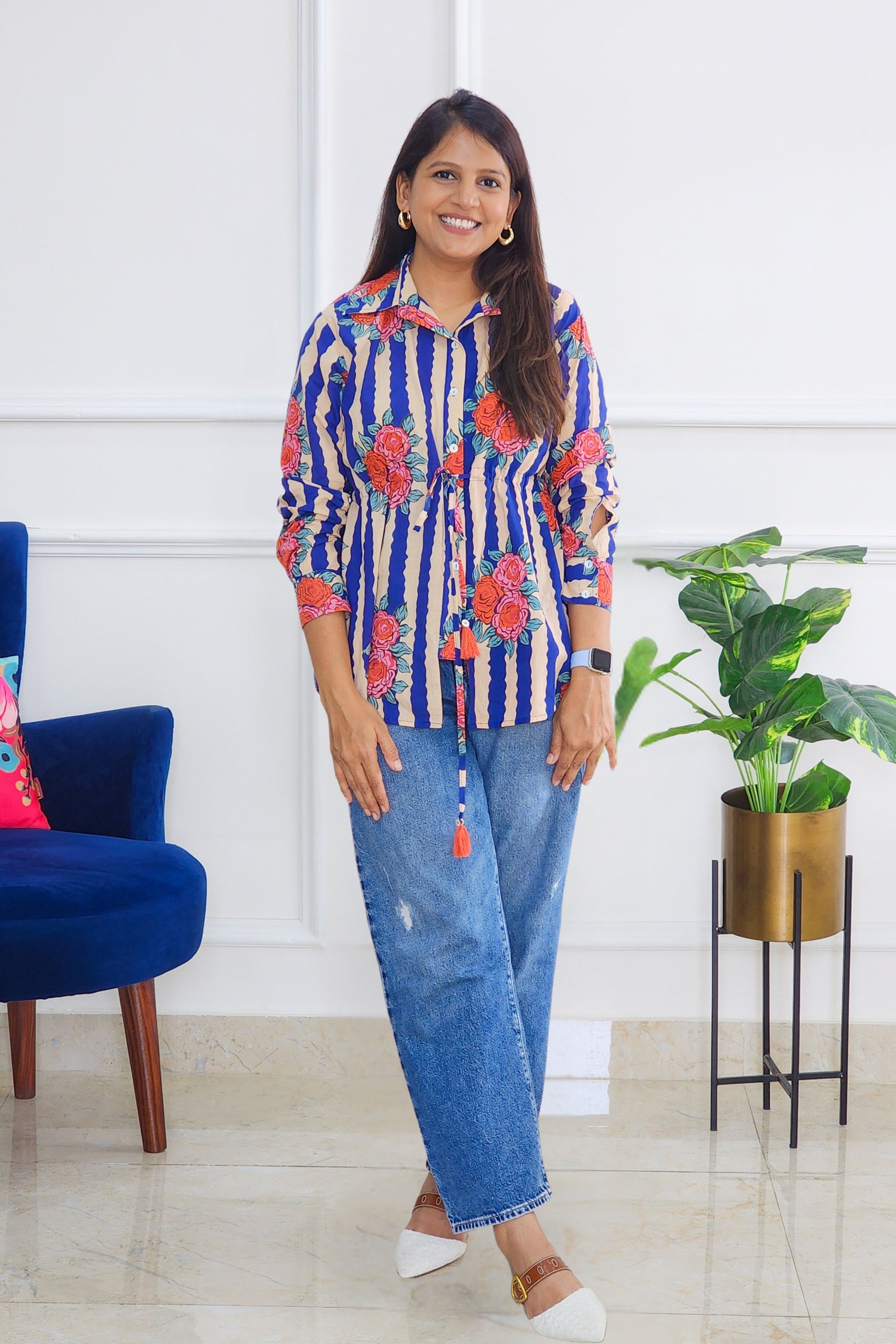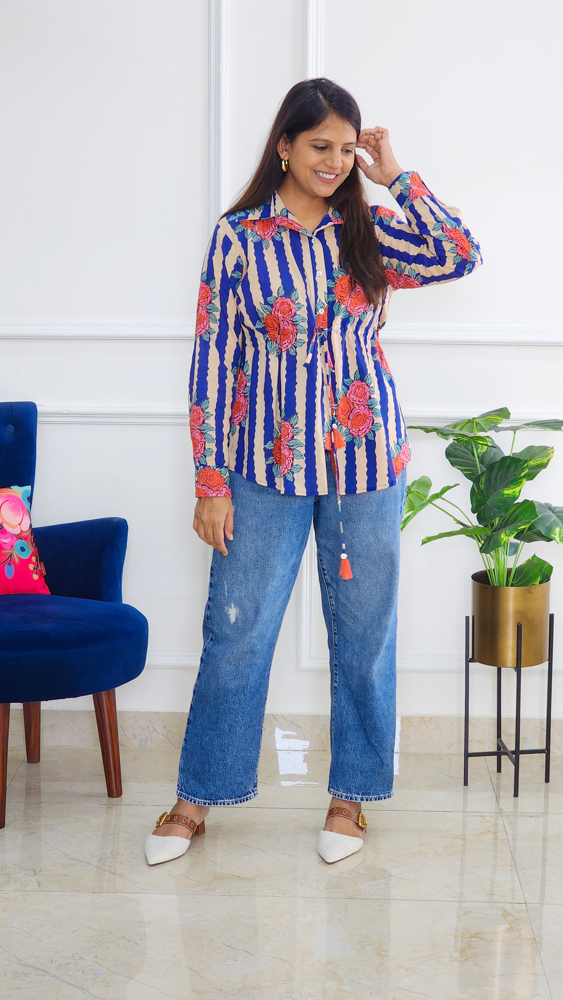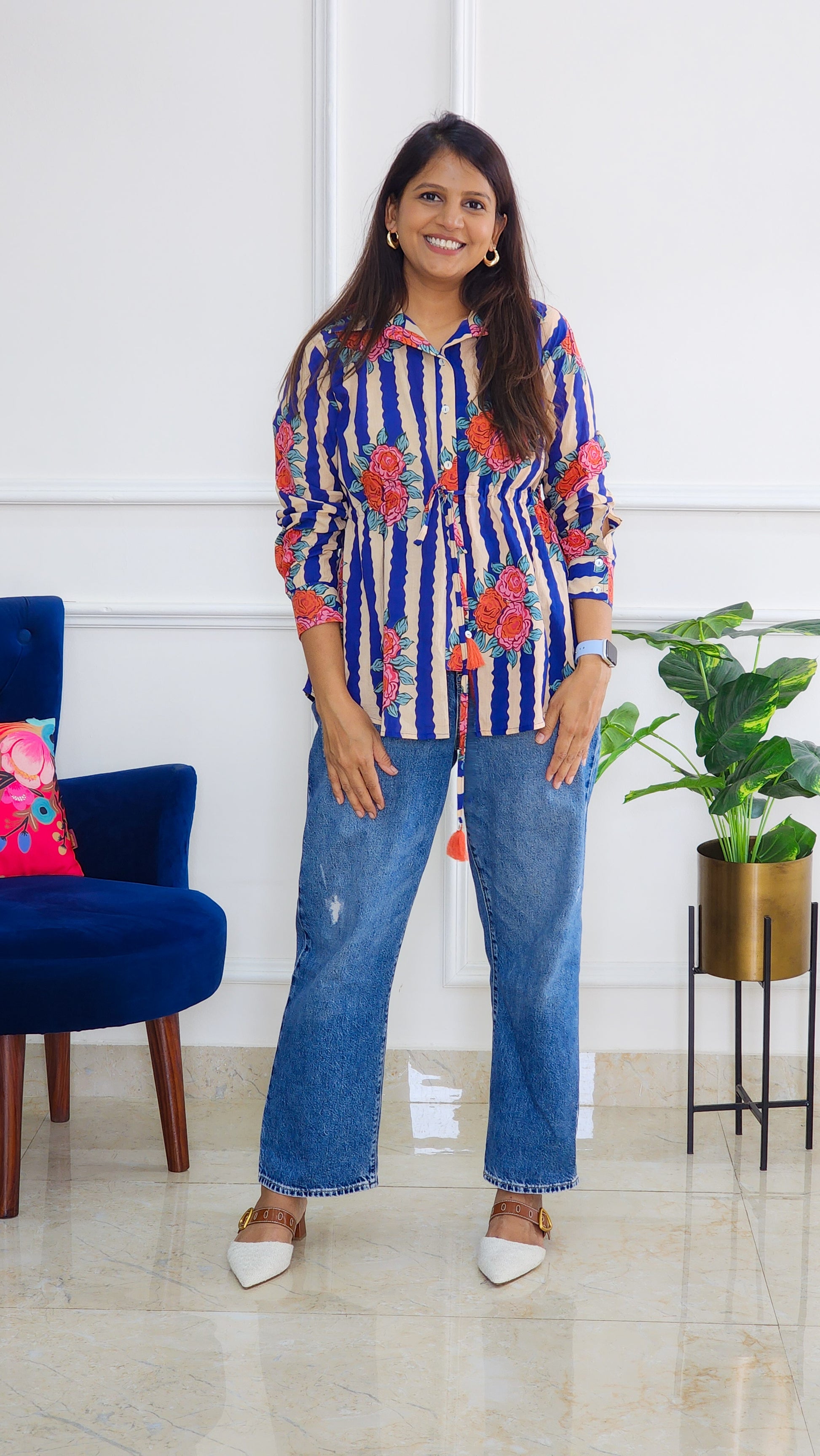 Blue Knot Detailing Block Shirt