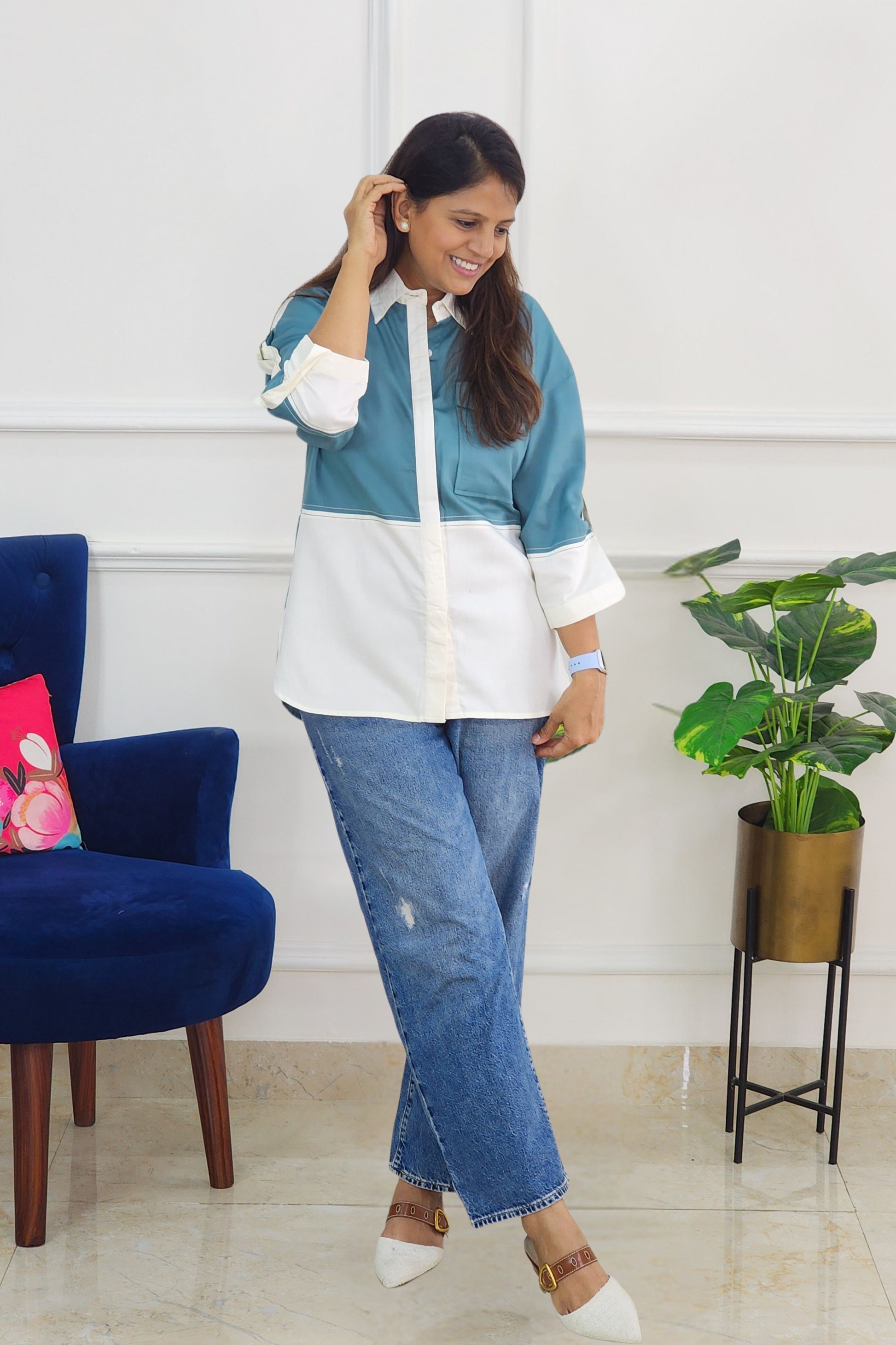 Firozi and White Shirt