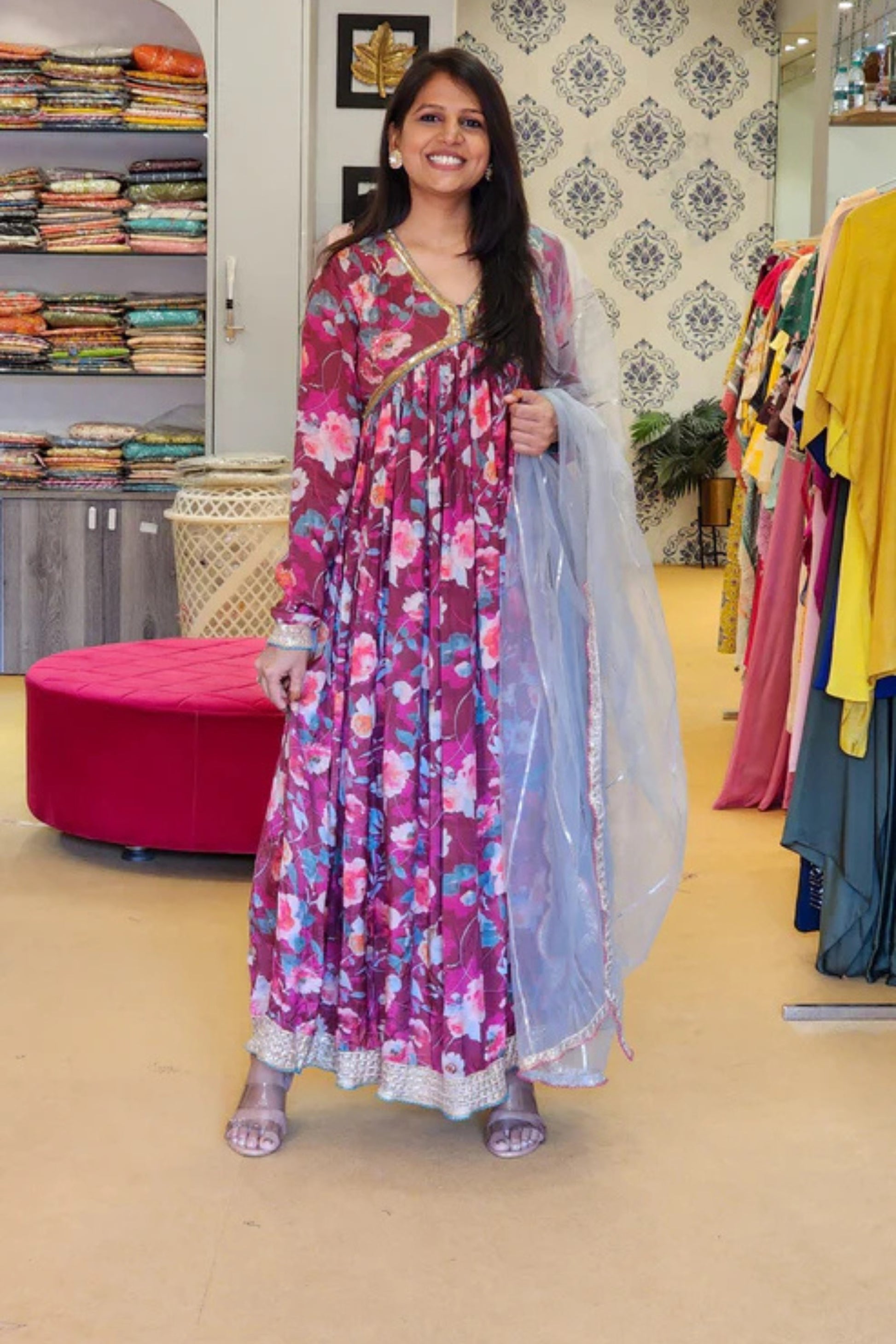 Seen Here is Our Floal Pure Muslin Flare Kurta with Duppata !
