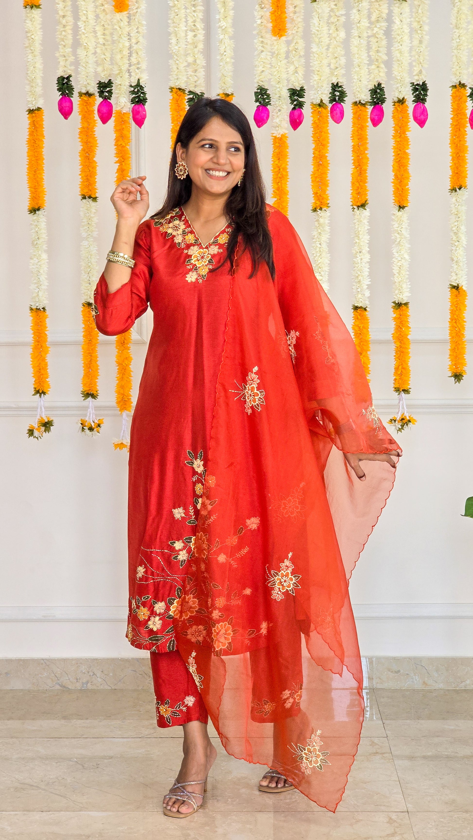 Fabric : Silk - Kurta and Pants, Organza - Duppata
