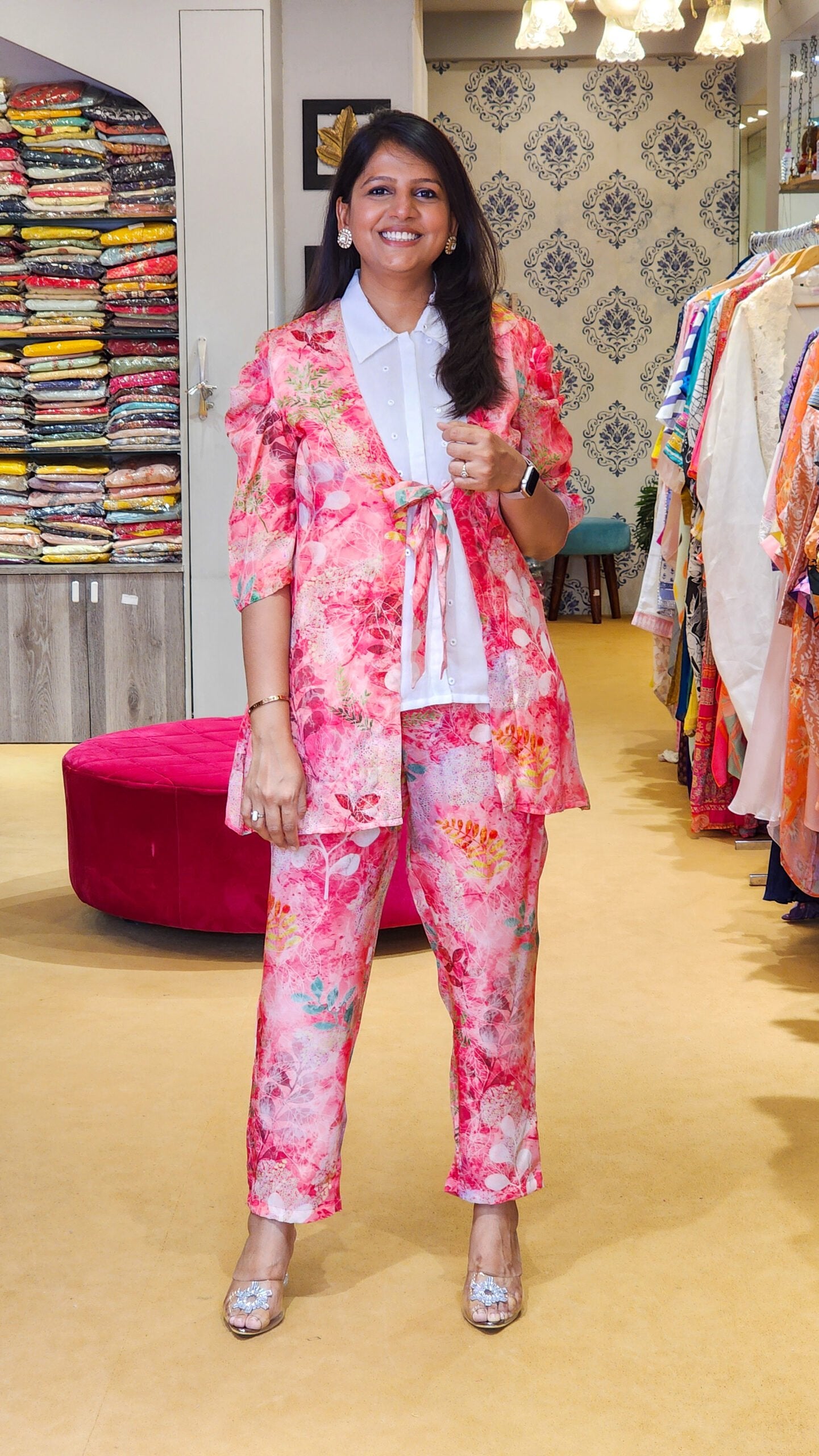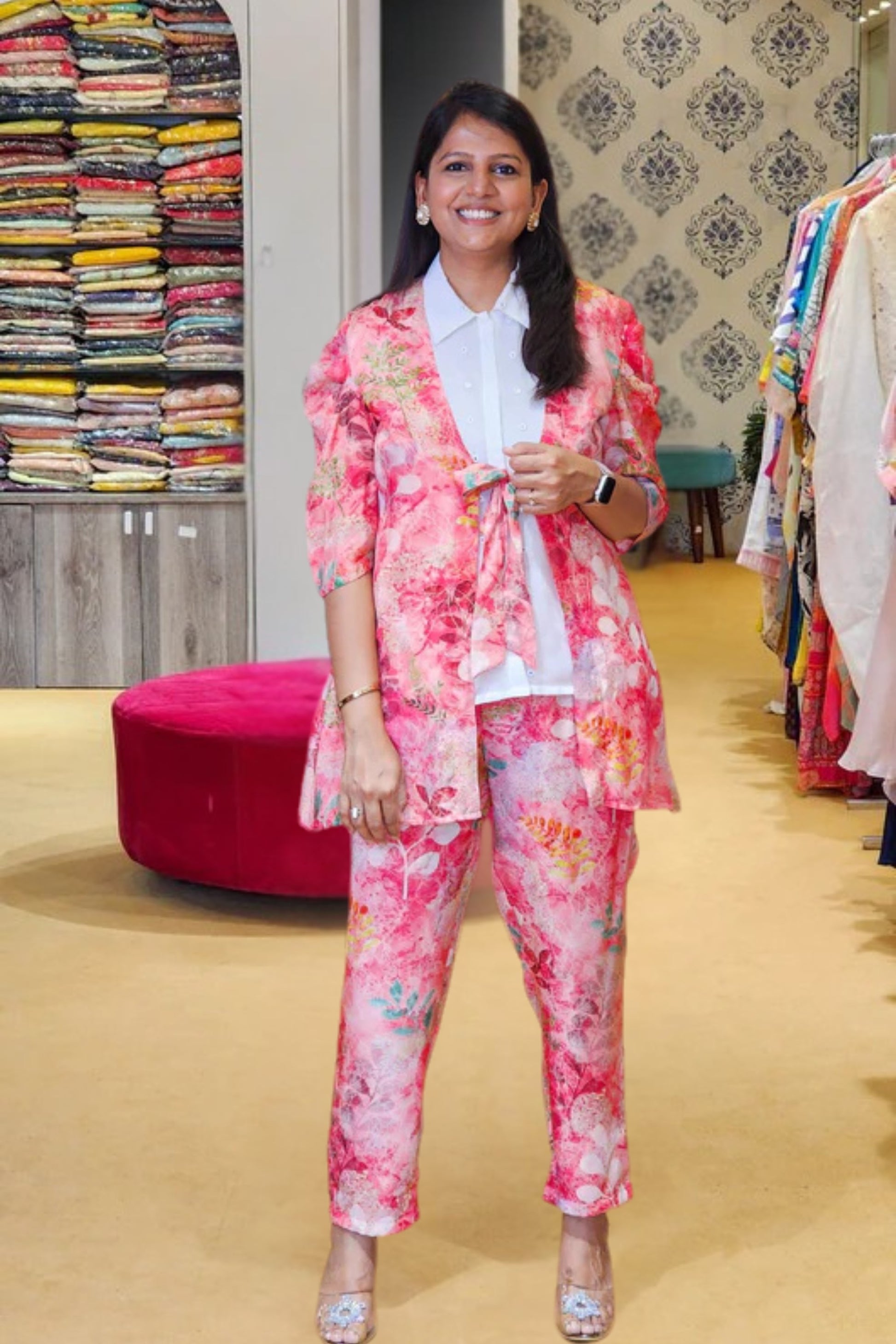 Here is on Soft Silk Co Ord Set with inner having mirror highlights all over !
