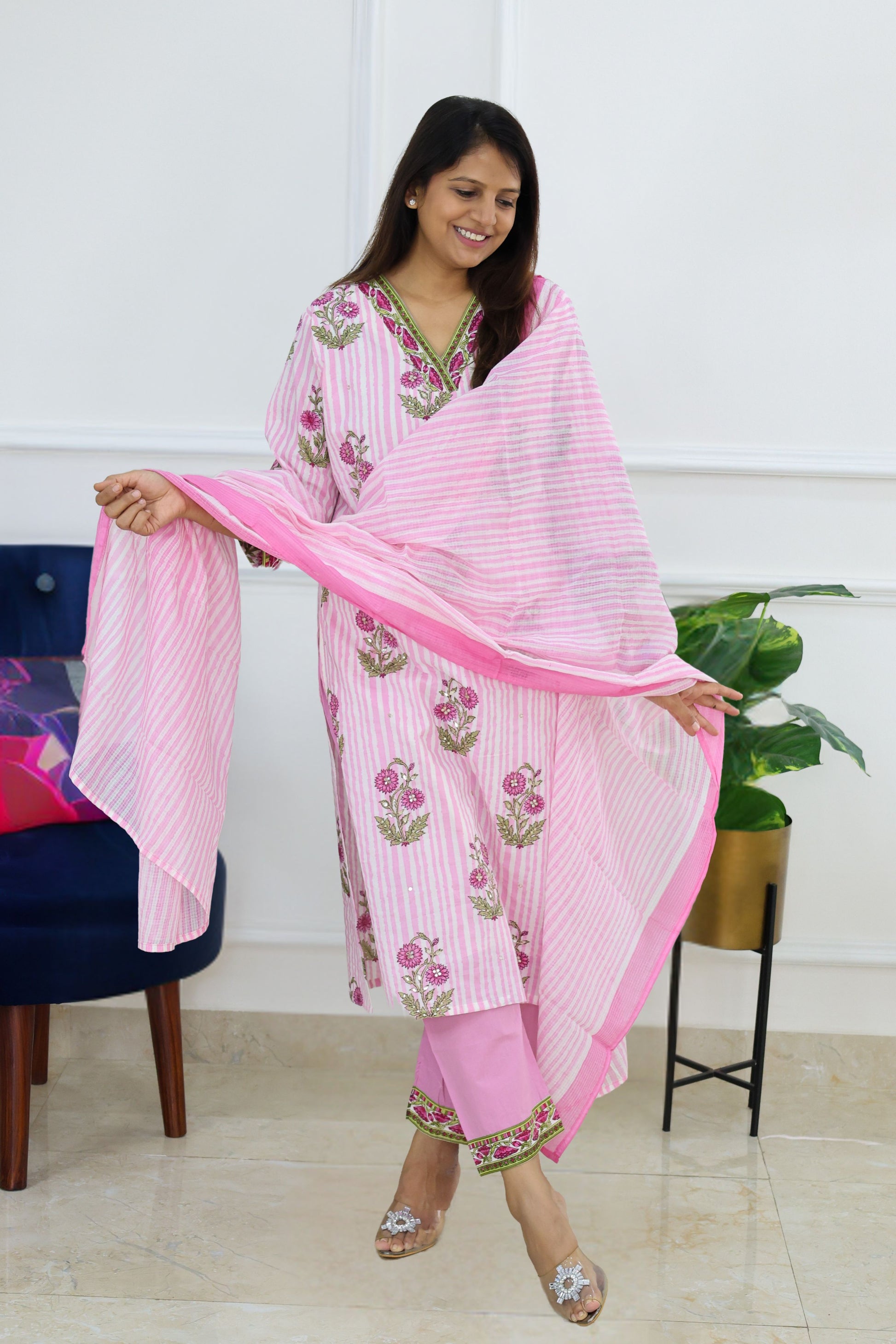 Pure cotton kurta set paired with an elegant Doriya dupatta !