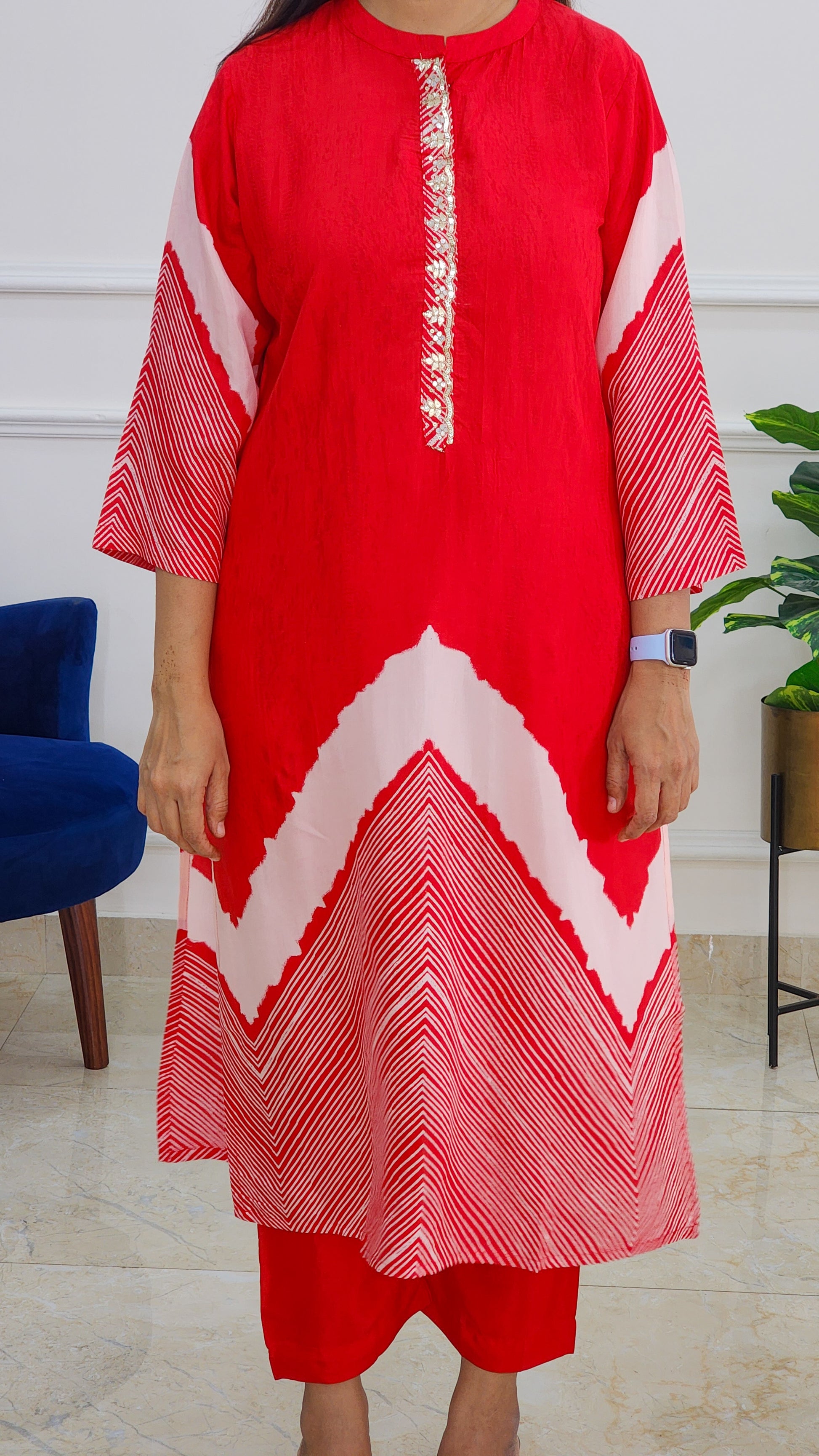 Tie Dye Kurta and Pants Set - Red
