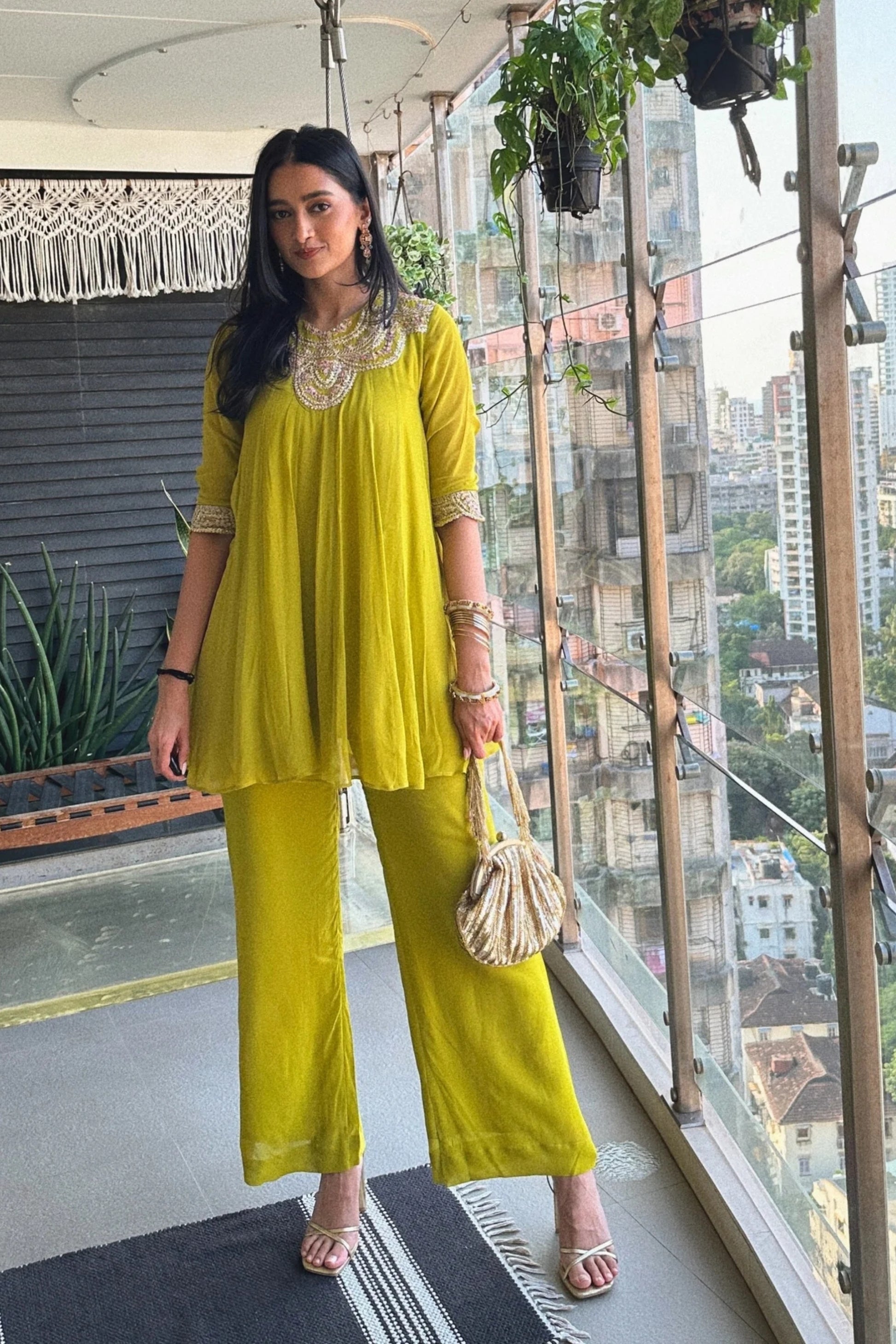Tyohar ~ Mehendi Green Kali Top with Zardosi Work and Pallazo Set